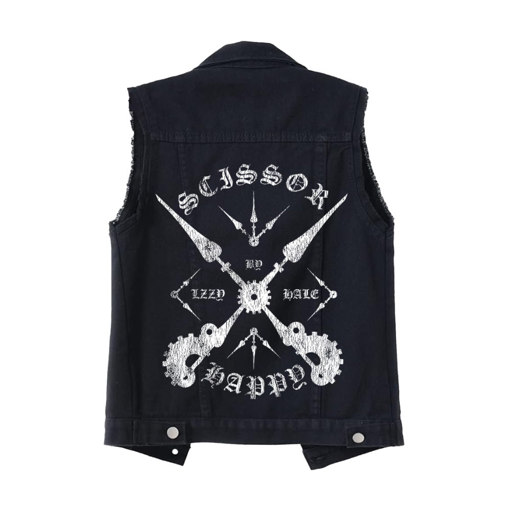 Limited edition black denim Scissor Happy vest by Lzzy Hale.